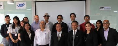 Picture caption: Participants in the resinar: The speakers are: Prof Pakorn (front row, centre), Mr Sanya (front row, fourth from right), and Mr Adam, Mr Muqbil and Mr Hardy (back row, respectively third, fourth and fifth from right). Other participants included representatives from the Dusit and Anantara groups, the Landmark, Asia Hotel, Baiyoke Sky Suites, and three PATA interns.